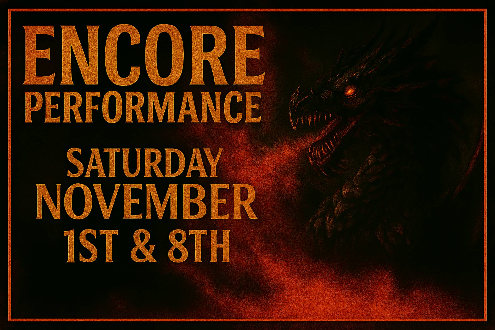 * See ticket link for final time slots. If you purchase tickets for the FINAL TIME SLOT,